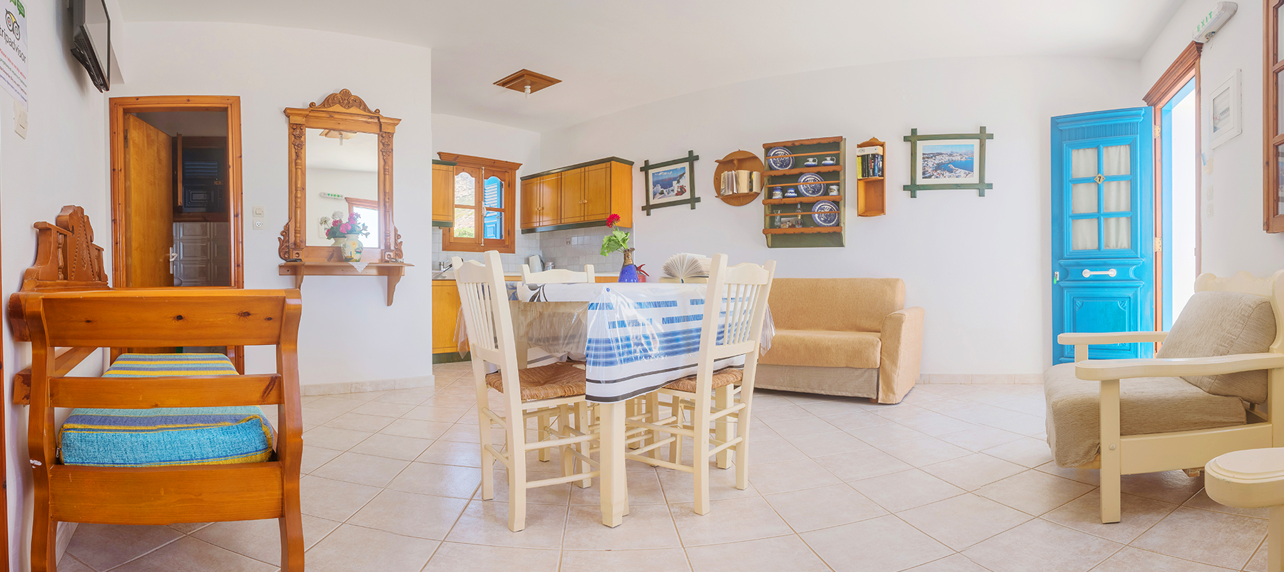 GENIESSEN SIE DEN BLICK AUF DAS DORF UND DAS ENDLOSE BLAUE MEER SOWIE DIE NATÜRLICHE GASTFREUNDSCHAFT UND TRADITION IN EINER DER AUTHENTISCHSTEN UND KOMFORTABELSTEN GEGENDEN VON KARPATHOS..